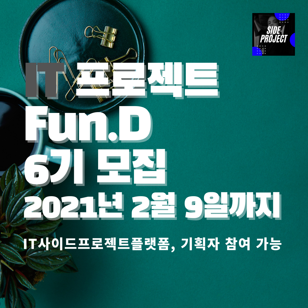 저희의 파트너십을 맺은 IT프로젝트 운영기관 중에서 2021올해 첫 모집공고로 어제 2021년 1월 4일 월요일부터 Fun.D가 6기 모집을 시작했습니다!!!