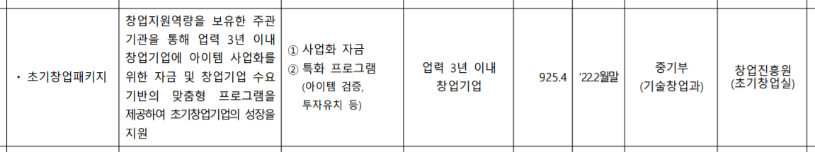 위에 있는 초기창업패키지는 사업명은 같지만 중기부에서 진행하는 것이 아닙니다.