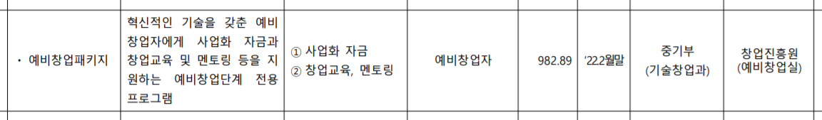 해당 자료의 출처는 K Startup의 2022년도 창업지원사업 통합공고이다.